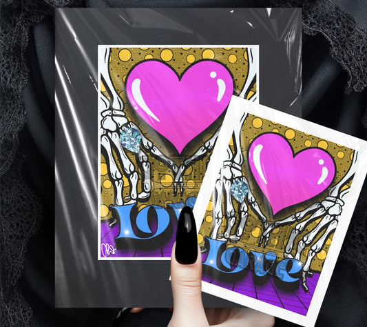 Skeleton Love Pop Art Print – Gothic Valentine’s Decor, ’Til Death Art, 8x6 or 11x14
