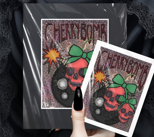 Cherry Bomb Skull Art Print – Gothic Leopard Print Wall Decor, 8×6 or 11×14 Matted