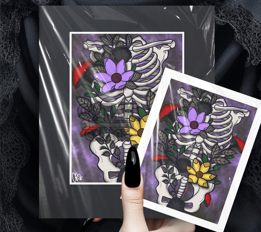 Floral Skeleton Art Print – Gothic Botanical Decor, Dark Anatomy Wall Art, 8x6 or 11x14