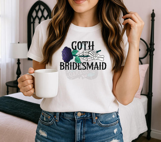 Goth Bridesmaid PNG – Gothic Wedding Party Digital Design, Skeleton Hand Clipart, Purple Rose Art File