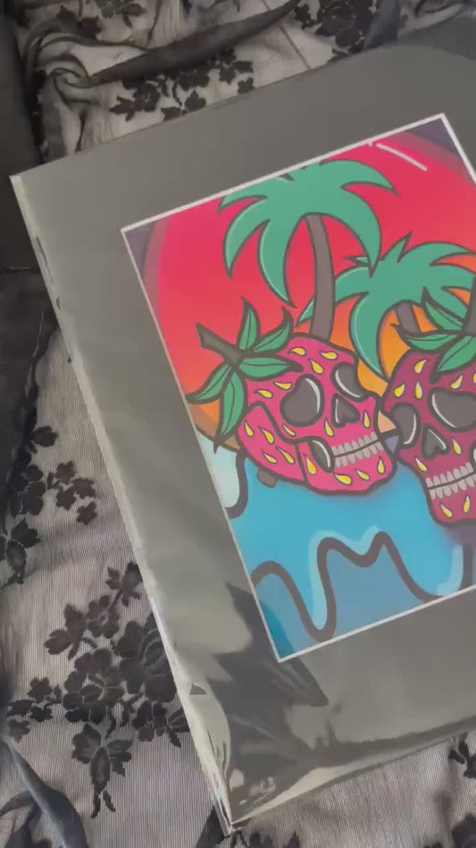 Florida Strawberry Skulls Art Print – Gothic Fruit Skulls, 8×6 or 11×14 Matted, Signed by Artist