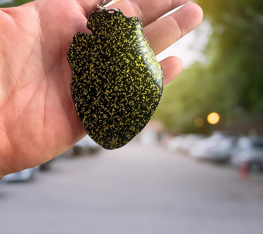 Anatomical Heart Keychain – Gothic Glitter Black & Gold Acrylic Keychain for Alternative Gifts