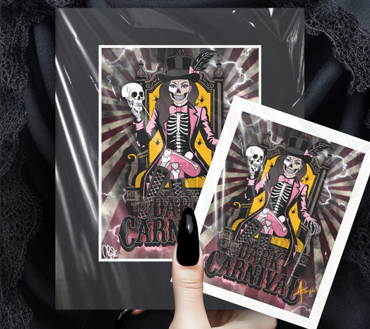 Dark Carnival Gothic Art Print – Skeleton Ringmaster | Spooky Circus Skull Print for Alt Gallery & Gothic Home