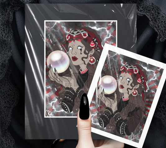 Fortune Teller Gothic Art Print – Mystical Crystal Ball Wall Decor for Alt Homes & Witches