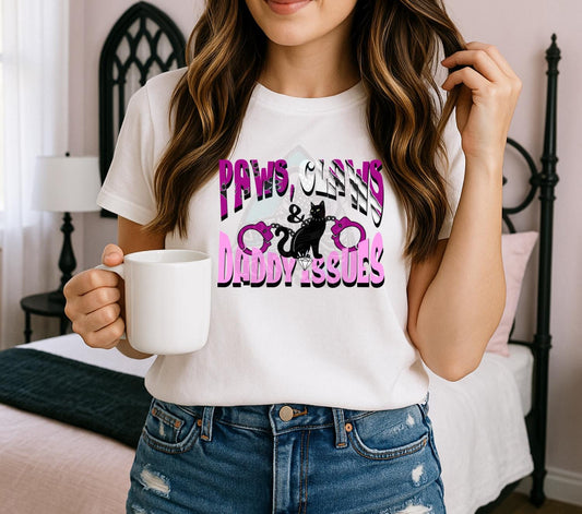Paws Claws & Daddy Issues PNG – Funny Alt Cat Girl Sublimation Design, Pink Goth Kitty Handcuff T-Shirt Graphic, Digital Download