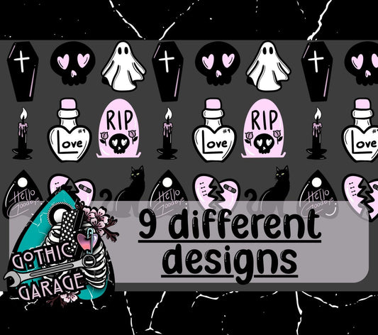 Pastel Goth Clipart Pack – 9 Cute & Creepy Digital Graphics for Crafts, Stickers and Sublimation