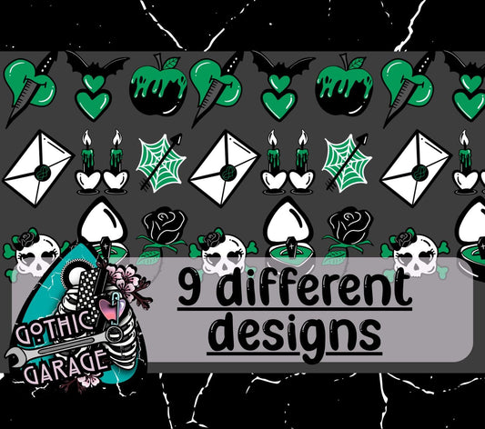 Romantic Goth Clipart Pack – 9 Green & Black Spooky Love Designs for Stickers, Crafts and Printing