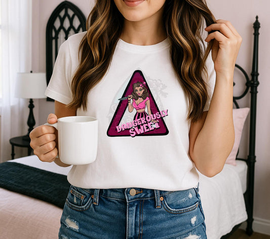 Dangerously Sweet PNG – Gothic Pin-Up Knife Girl Sublimation T-Shirt Design, Pink Retro Horror Clipart for Apparel, Digital Download