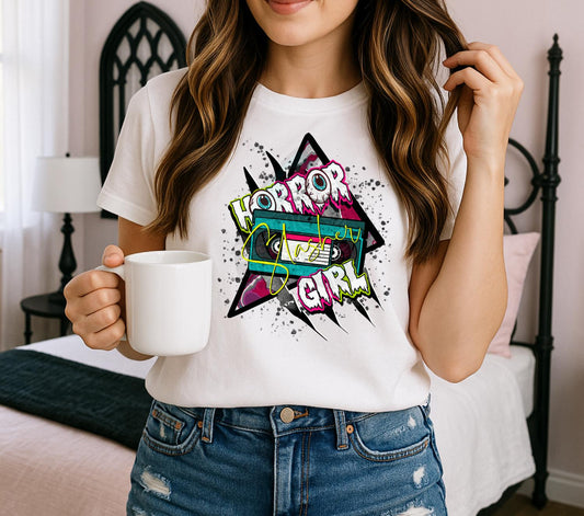 Horror Slasher Girl T-Shirt Design – PNG Retro VHS Aesthetic for Sublimation