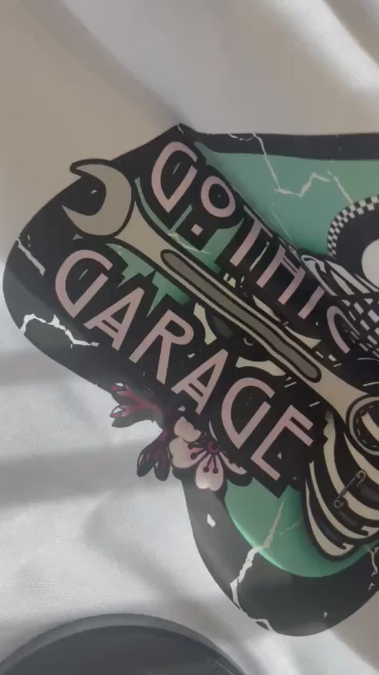 Gothic Punk Heel Sticker: Knife Blade, Fishnet Leg - Waterproof Die Cut