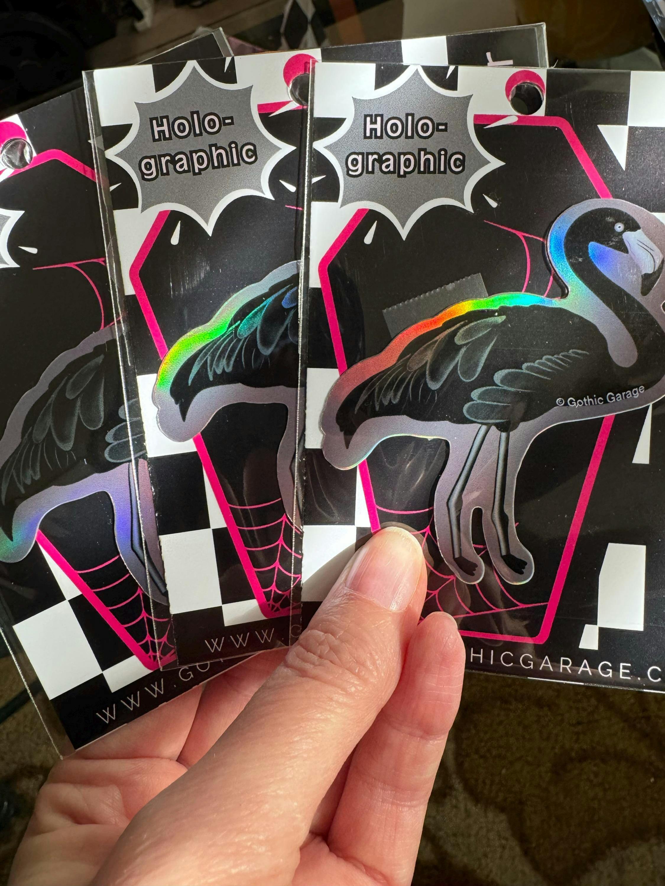 I got these for myself and two friends. We love them so much! The holographic design works great with the black color of the flamingo.