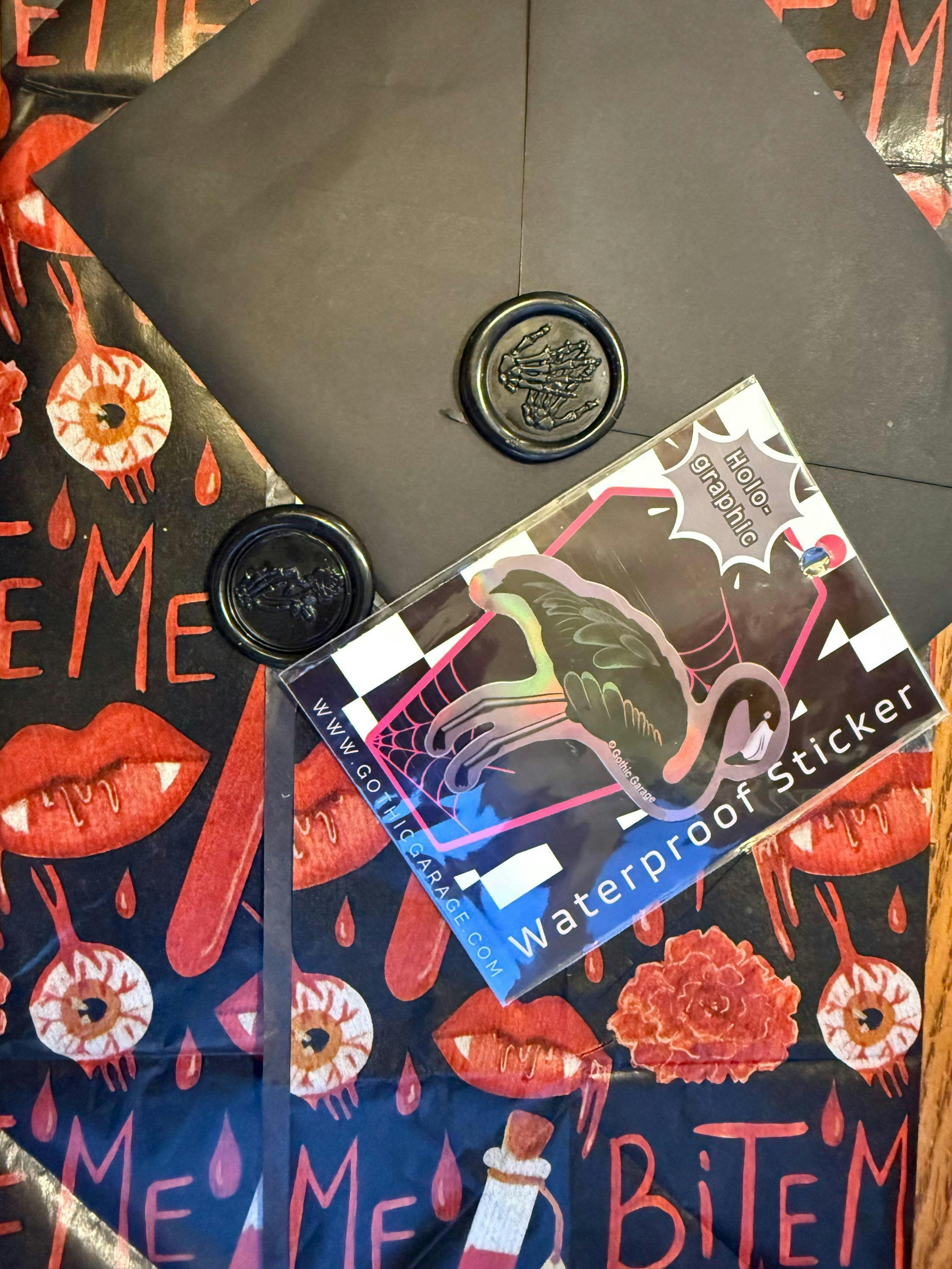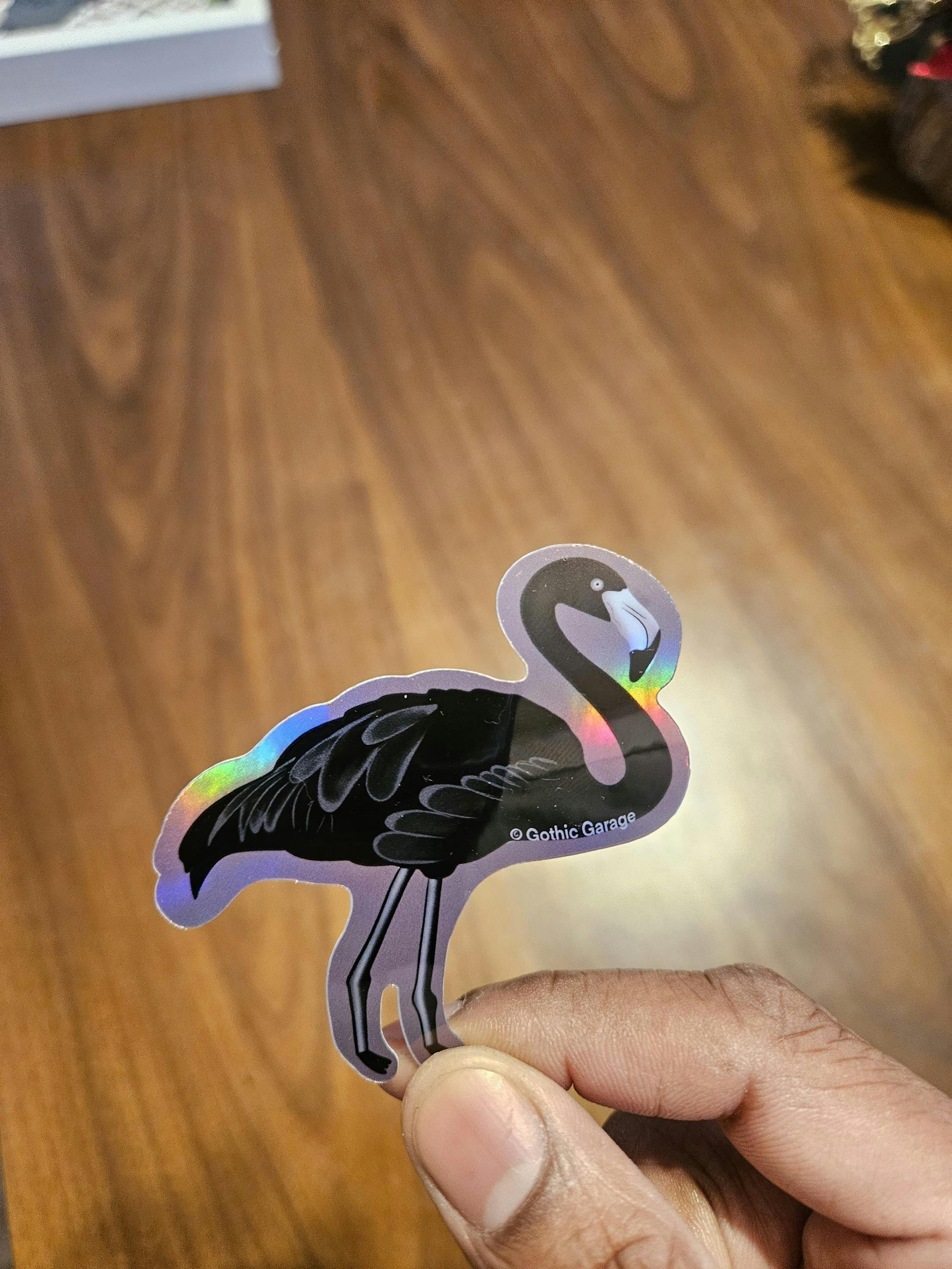 Forget lawn ornaments and tourist kitsch — this flamingo came straight out of the crypt. A glossy or holographic black bird with attitude, ready to haunt your water bottle, laptop, or whatever surface you decide needs a little goth makeover.